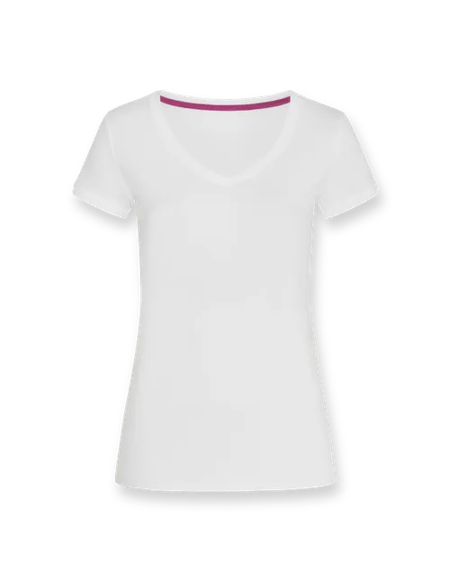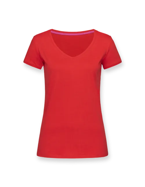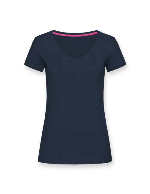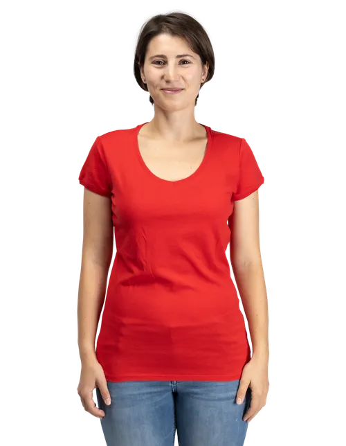 T-Shirt mit weitem V-Kragen für Damen. Die taillierte Passform ist für viele Körpertypen geeignet und lässt sich zu verschiedenen Outfits kombinieren.